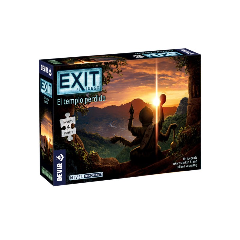 En Exit: El templo perdido tú y tus amigos vais a vivir una emocionante carrera atravesando la peligrosa jungla en una pequeña isla enclavada en medio del océano Índico. El Templo Sagrado se encuentra en lo más profundo de la jungla, pero antes de poder explorar el misterioso templo todos debéis colaborar para resolver los enigmas mediante el ensamblaje de cuatro rompecabezas que os darán las pistas que necesitáis para que vuestra aventura llegue a buen puerto.
