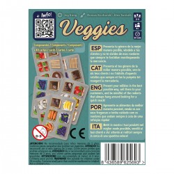 Veggies es un juego para disfrutar tanto en familia como entre amigos. Dispone de variantes para 2 y 4 jugadores que lo hacen muy versátil y supone un divertido reto para toda clase de jugadores. ¡Llena de frutas y verduras tu puesto del mercado y consigue la puntuación más alta!