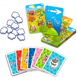 Ayuda a los animales de la granja a encontrar sus objetos A los animales de la granja les encanta compartir sus cosas con los demás, pero como siempre están en las nubes nunca recuerdan dónde o a quién se las han dejado. Afortunadamente, cuentan con el olfato de Enola que siempre está dispuesta a echarles una pata. Vota rápidamente qué animal crees que tiene el objeto en la última carta para ser la persona que más nubes haya conseguido al final de la partida.
