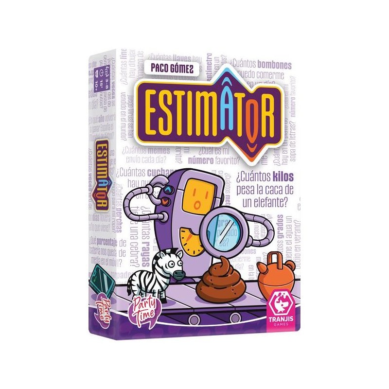Estimator es un juego de cartas donde estimarás todo lo mesurable. Preguntas incalculables como ¿Cuánto pesa la caca de un elefante? o ¿Cuántas rayas tiene una cebra? Que no importa que las sepas, sino que lo calculen los demás. No encontrarás respuestas pero te volverás loco con las respuestas de los jugadores. ¿Quién será el más exagerado y quién se quedará corto?