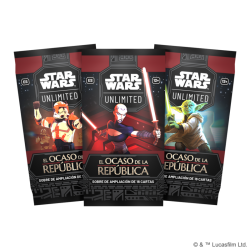 La colección de El ocaso de la República recrea los conflictos militares entre la República Galáctica y la Confederación de Sistemas Independientes, protagonizados por los héroes y villanos que se enfrentaron durante el transcurso de las llamadas Guerras Clon. Cada sobre de ampliación permite diseñar y mejorar mazos para partidas en los formatos uno contra uno, multijugador, preselección y mazos cerrados.
