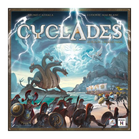 Cyclades: Edición Legendaria es un juego de mesa donde viajarás a las Cícladas, una leyenda donde los dioses griegos antiguos observan mientras las grandes facciones compiten por el dominio. En las Cícladas, frente a las costas de Grecia, deberéis desarrollar vuestras ciudades y competir por la supremacía bajo la mirada de los dioses. La partida tiene un sistema estratégico de pujas que establece las acciones para cada uno en su turno. Como objetivo, deberás equilibrar las finanzas para optimizar las distintas acciones de los distintos dioses, y cada uno dispondréis del apoyo de un solo dios en cada turno. El juego contiene una fase de pujas más corta y dinámica que el Cyclades original debido a una nueva escala de pujas exponencial. Hay seis dioses en vez de cinco, para aumentar las acciones disponibles. Estos son: Ares (permite el movimiento de los ejércitos y la construcción de fortalezas), Poseidón (permite el movimiento de armadas y construcción de puertos), Zeus (permite contratar sacerdotes y construir templos), Atenea (proporciona filósofos y universidades), Apolo (incrementa los ingresos de sus adoradores) y Hera (proporciona mercenarios para reforzar las tropas en la batalla). Los jugadores usan fichas de paisaje para montar el tablero modular en la preparación. Esto permite cambiar los mapas y estrategias continuamente. Añade nuevas criaturas y héroes al juego base y disfruta de nuevas oportunidades estratégicas para construir tu metrópolis y ganar ventajas para usar en el campo de batalla. Tu objetivo será ser el primero en controlar tres metrópolis. Esto puede ser de la siguiente manera: desarrollo económico (construir cuatro edificios diferentes), desarrollo intelectual (tras poseer cuatro filósofos), hazañas históricas (al sacrificar un héroe) y la conquista militar (al tomar por la fuerza una ciudad enemiga). Esta expansión contiene tres opciones de juego: modo clásico para 3-5 jugadores donde cada uno defiende sus intereses, el modo equipo para 4 o 6 jugadores donde formaréis equipos de dos, cooperaréis y competiréis contra los demás, y el modo para dos jugadores mejorado.